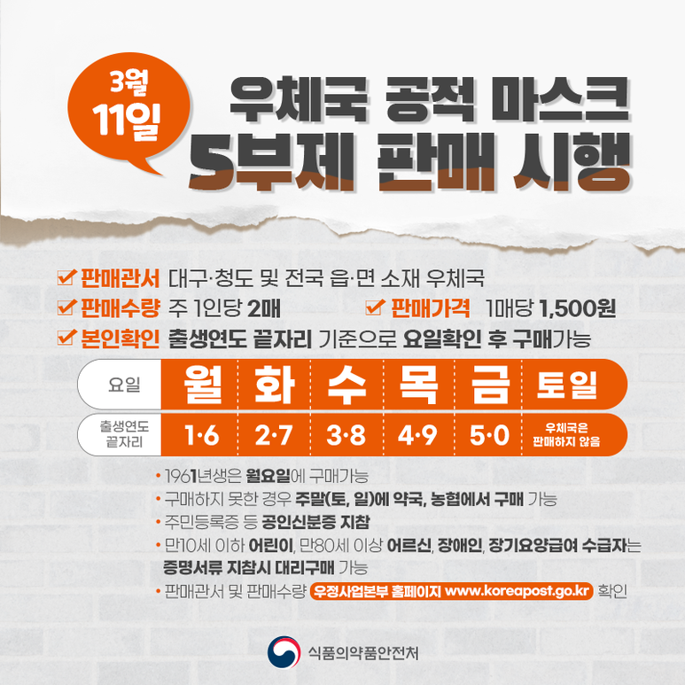 우체국 마스크 판매( 마스크구매 5부제 시행)